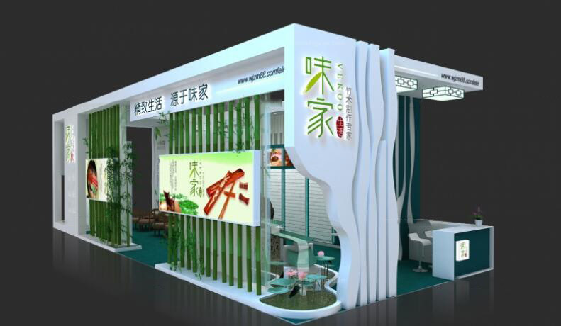 契合味家的品牌形象和產(chǎn)品特性,采用矩形結(jié)構(gòu),再搭配燈具燈光的效果,襯托出展位大氣、豪華的氛圍,突出一種簡(jiǎn)約、時(shí)尚的品味。