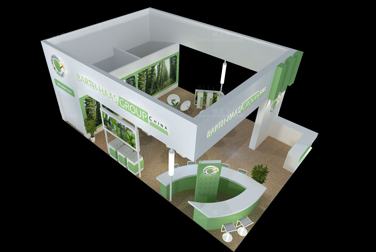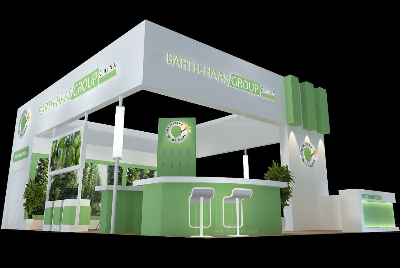 巧妙的運用綠色、白色作搭配,著重突出品牌和產(chǎn)品的展示,使整個展位時尚新穎。