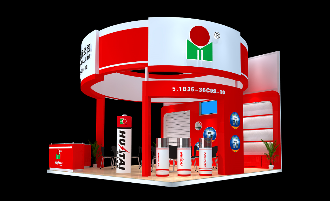 契合華太電池的品牌形象和產品特性,采用弧形、矩形結構,再搭配燈具燈光的效果,襯托出展位簡約、時尚的氛圍,突出一種現(xiàn)代、簡約的時尚品味。