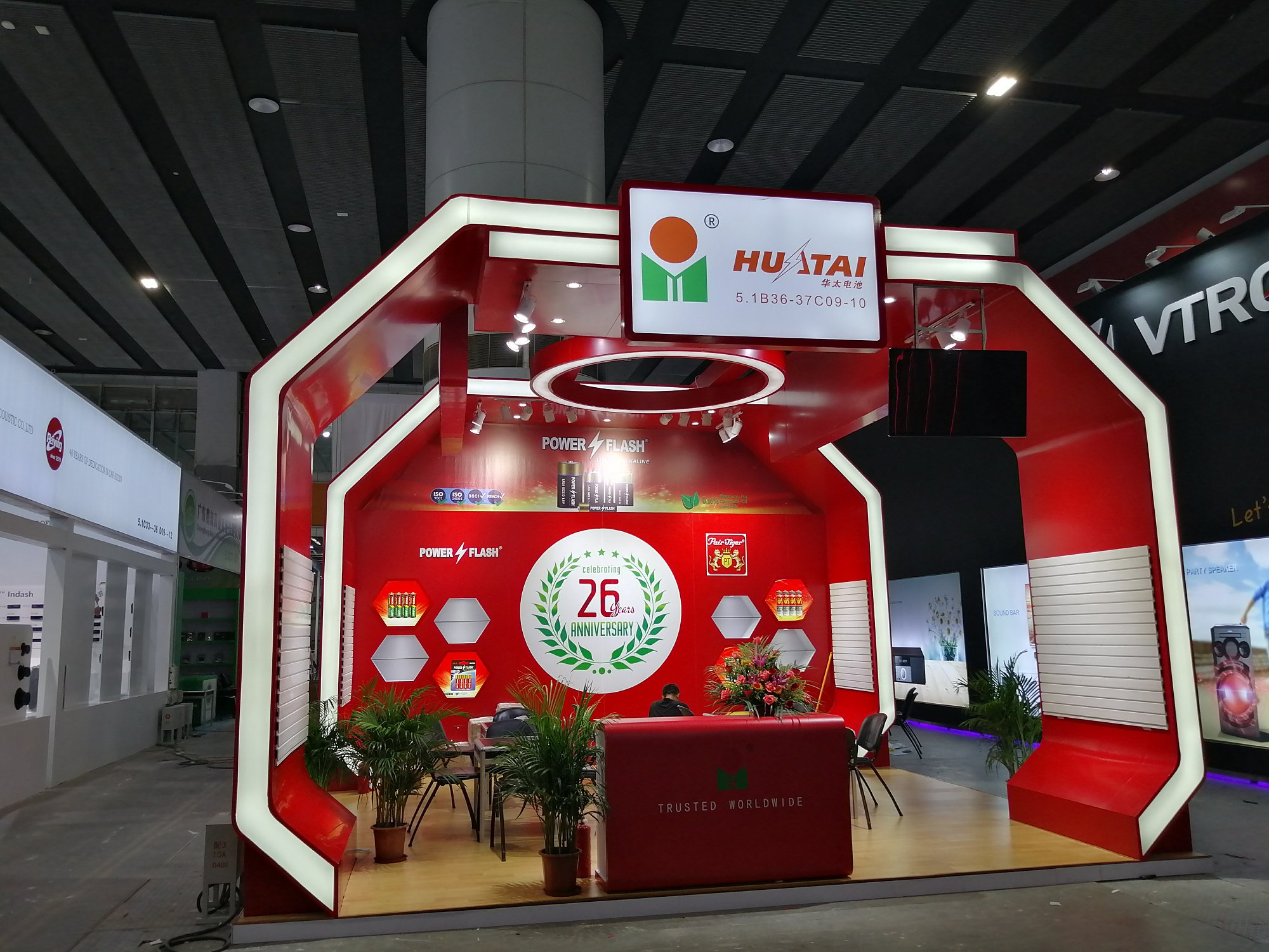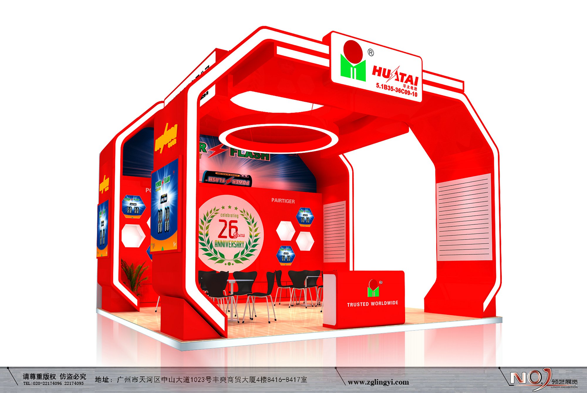 契合華太電池的品牌形象和產(chǎn)品特性,采用開(kāi)放式結(jié)構(gòu),再搭配燈具燈光的效果,襯托出展位大氣、豪華的氛圍,突出一種簡(jiǎn)約、時(shí)尚的品味。