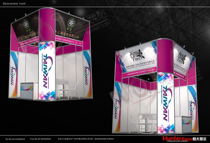 巧妙的運(yùn)用粉紅色、白色作搭配,著重突出品牌和產(chǎn)品的展示,使整個(gè)展位時(shí)尚簡(jiǎn)約又溫馨。