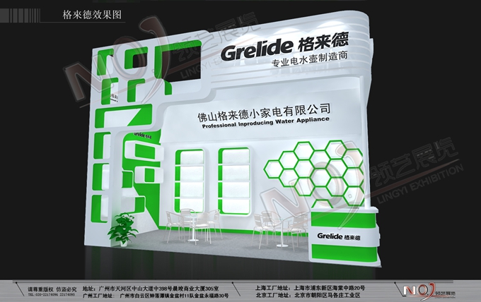 契合格來(lái)德的品牌形象和產(chǎn)品特性,采用框型結(jié)構(gòu),再搭配燈具燈光的效果,襯托出展位自由、簡(jiǎn)約的氛圍,突出一種現(xiàn)代、舒適的時(shí)尚品味。