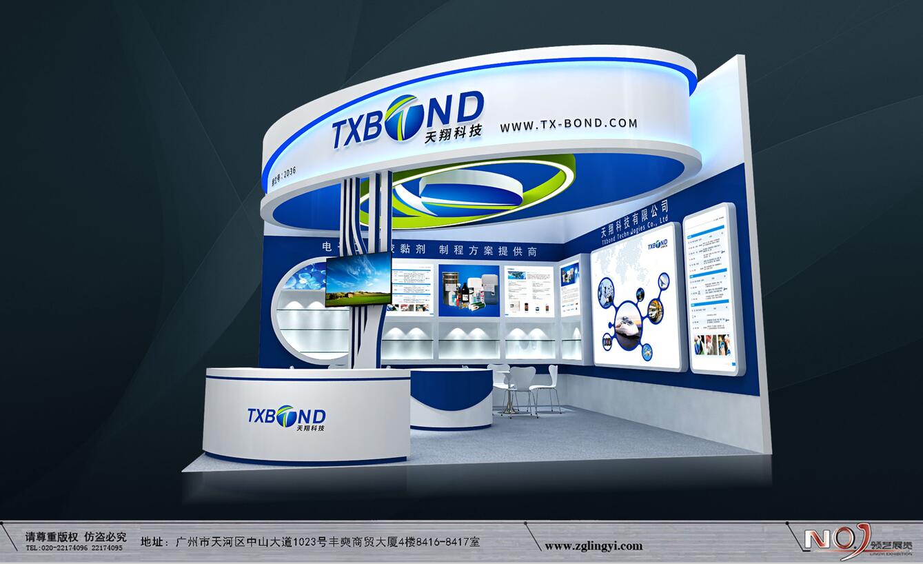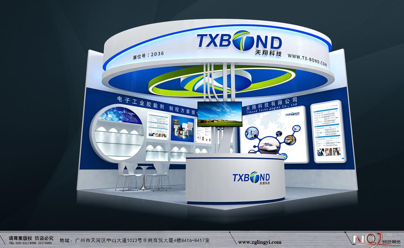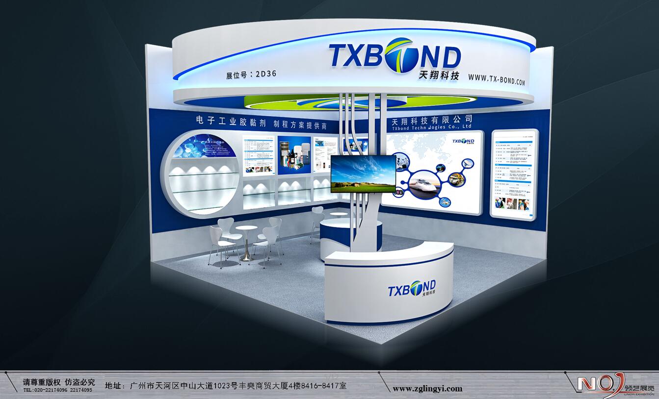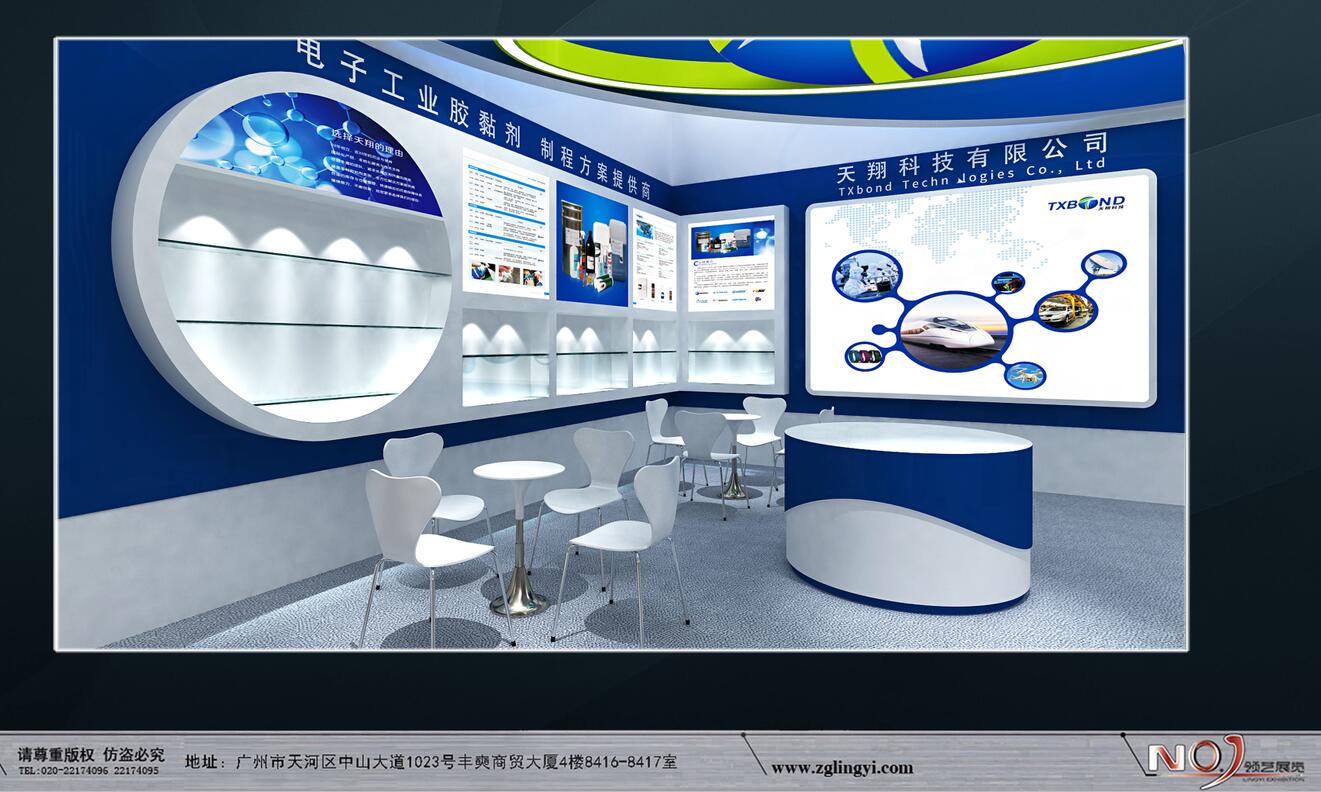 契合天翔科技品牌形象和產(chǎn)品特性,利用天花造型,再搭配燈具燈光的效果,襯托出展位現(xiàn)代、突出一種現(xiàn)代、高端的時(shí)尚品味。