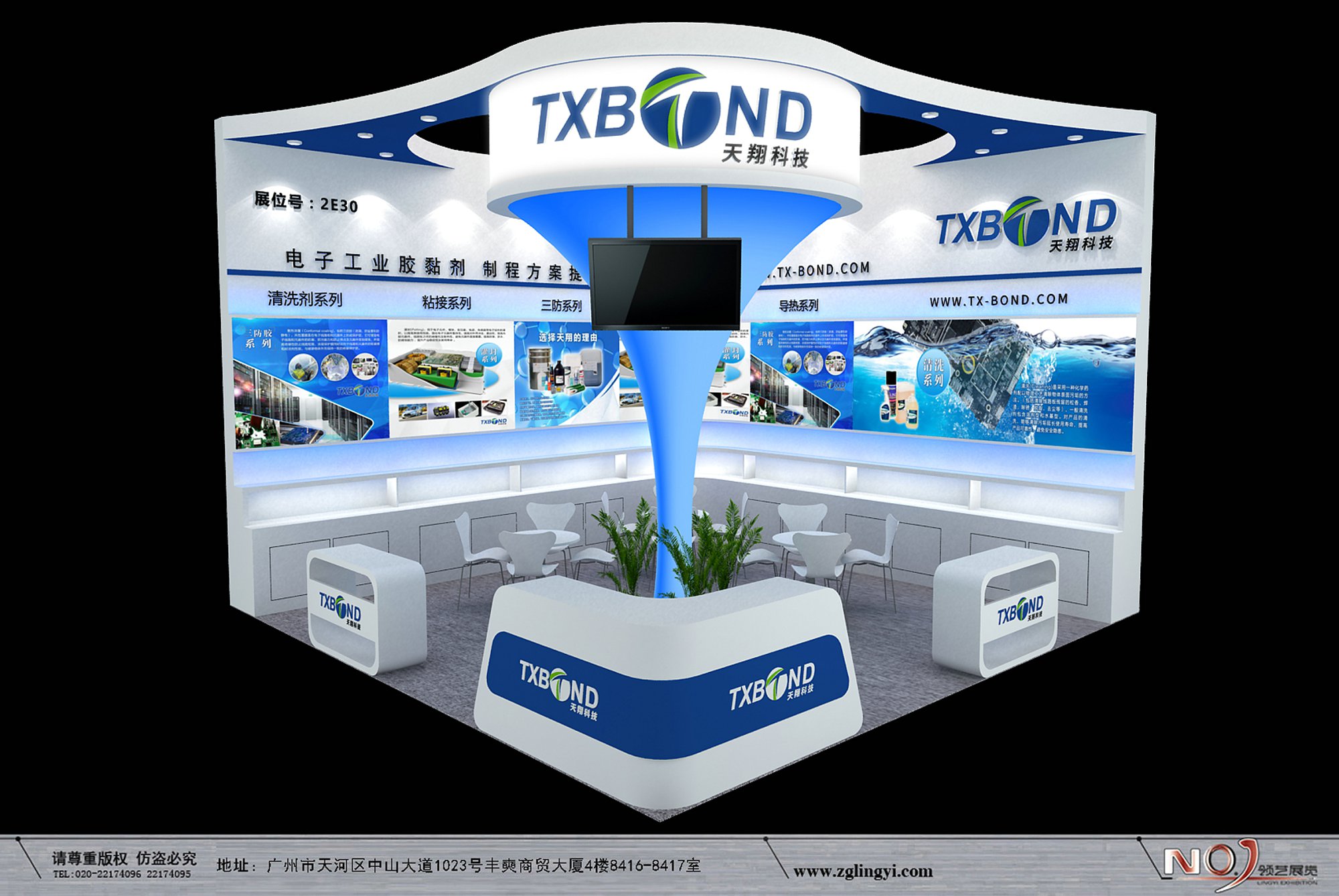契合天翔科技的品牌形象和產(chǎn)品特性,采用弧形結(jié)構(gòu),再搭配燈具燈光的效果,襯托出展位大氣、豪華的氛圍,突出一種簡(jiǎn)約、時(shí)尚的品味。