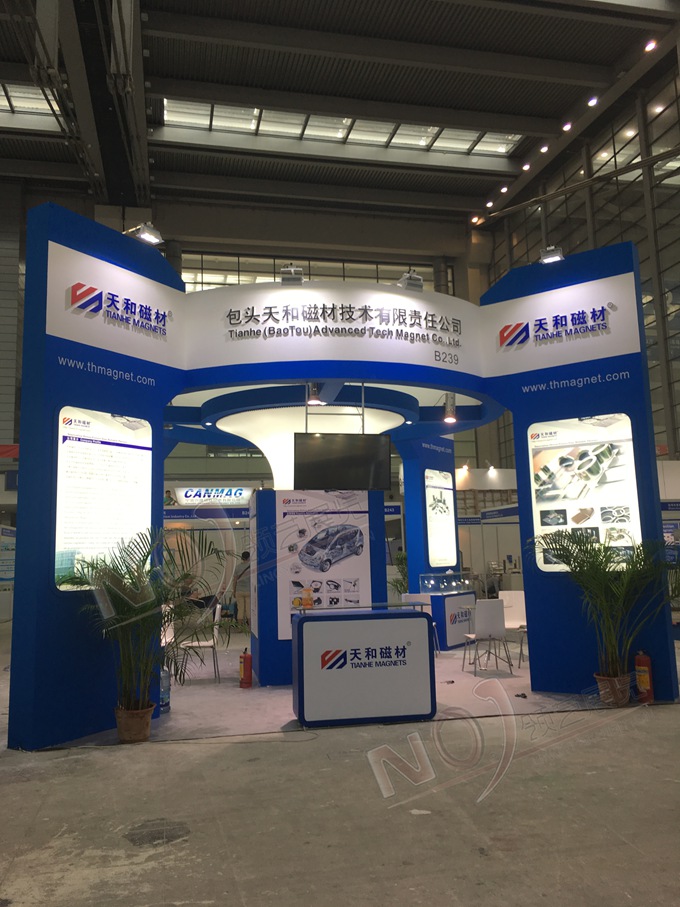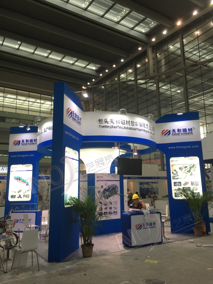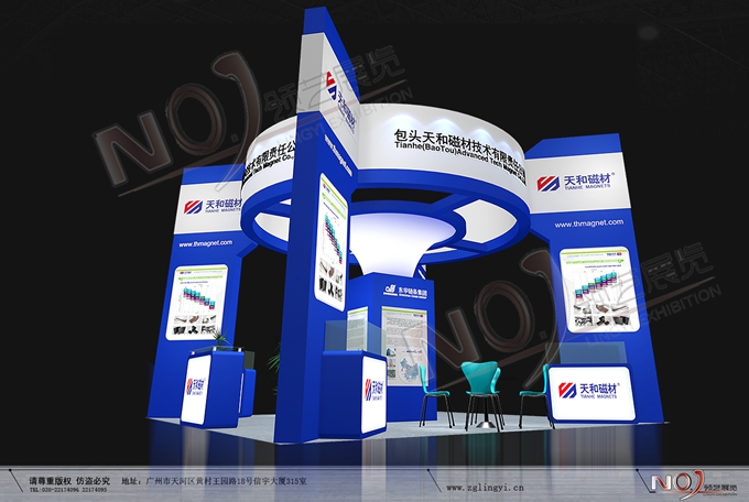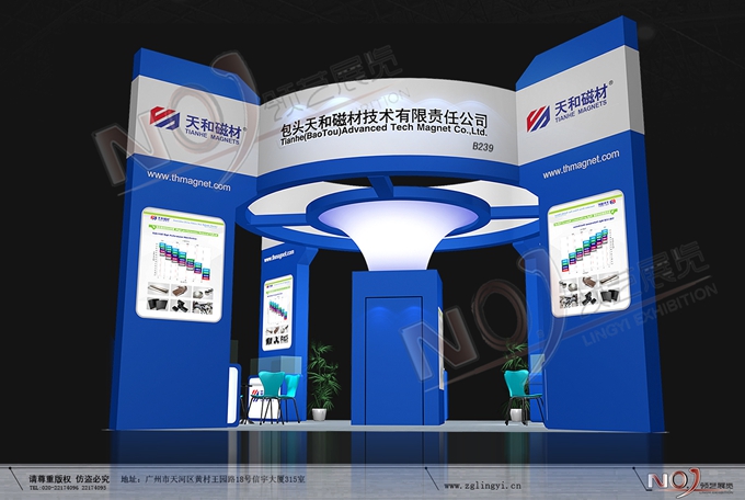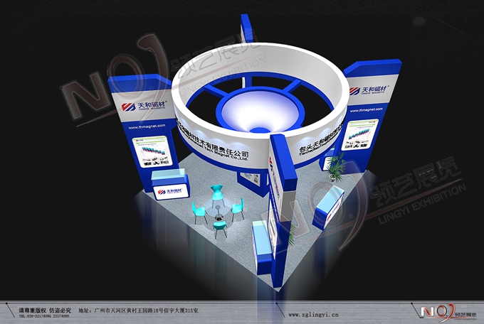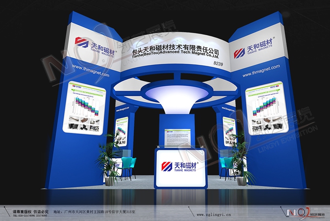 契合天和磁材的品牌形象和產(chǎn)品特性,采用曲線、框型結(jié)構(gòu),再搭配燈具燈光的效果,襯托出展位簡約、舒適的氛圍,突出一種躍動(dòng)、簡約的時(shí)尚品味。
