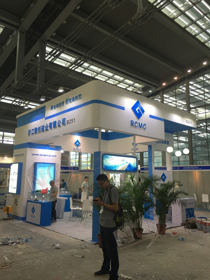巧妙的運用藍色、白色作搭配,著重突出品牌和產品的展示,使整個展位時尚新穎又大氣。