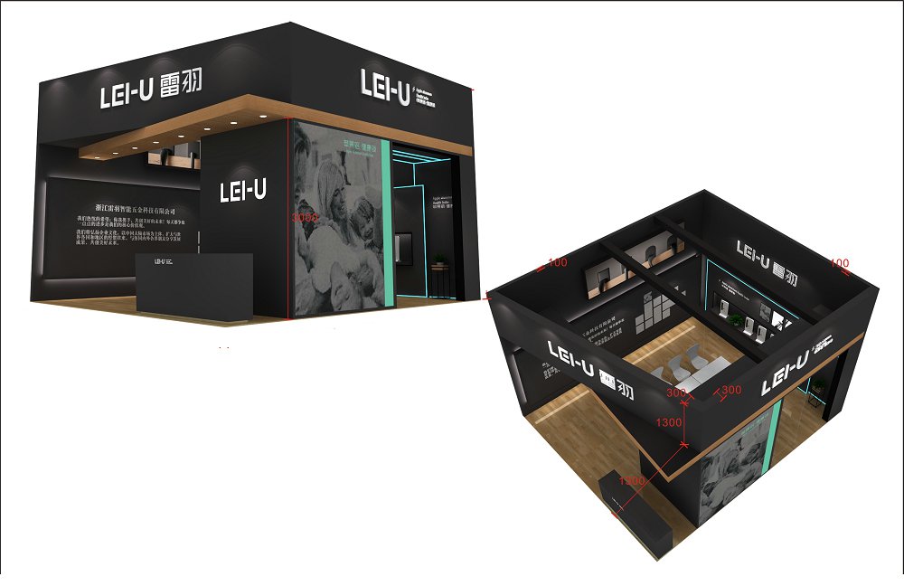 契合雷羽的品牌形象和產(chǎn)品特性,采用矩形結(jié)構(gòu),再搭配燈具燈光的效果,襯托出展位大氣、豪華的氛圍,突出一種簡約、時尚的品味。