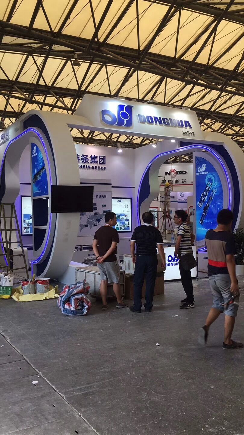 契合東華鏈條的品牌形象和產(chǎn)品特性,采用弧形、矩形結(jié)構(gòu),再搭配燈具燈光的效果,襯托出展位簡(jiǎn)約、時(shí)尚的氛圍,突出一種現(xiàn)代、簡(jiǎn)約的時(shí)尚品味。