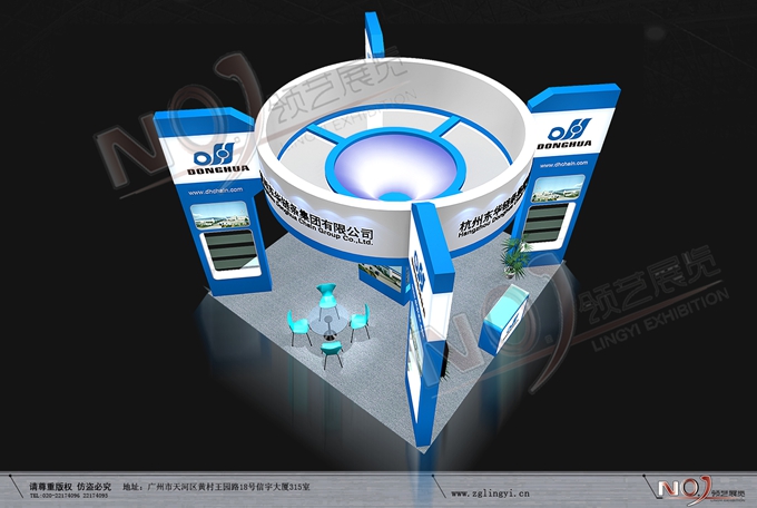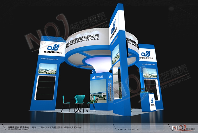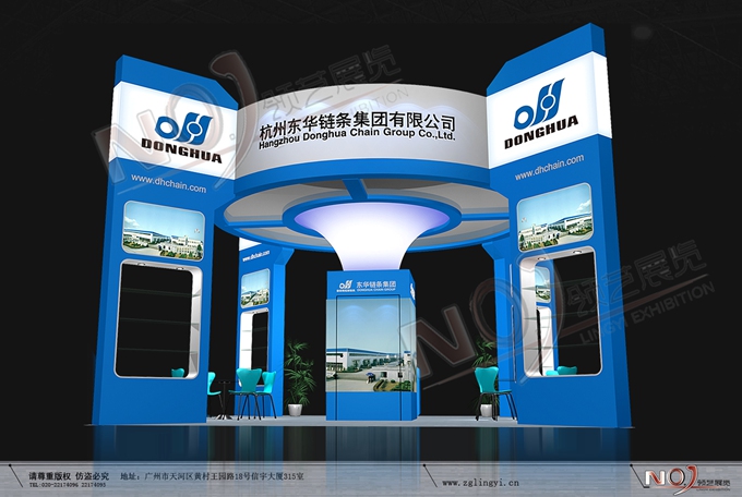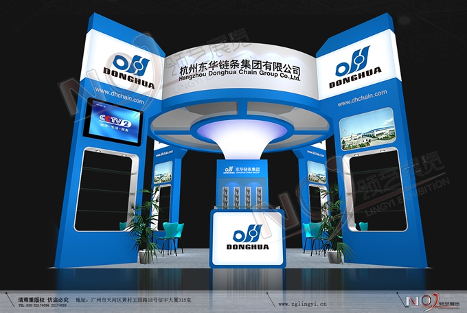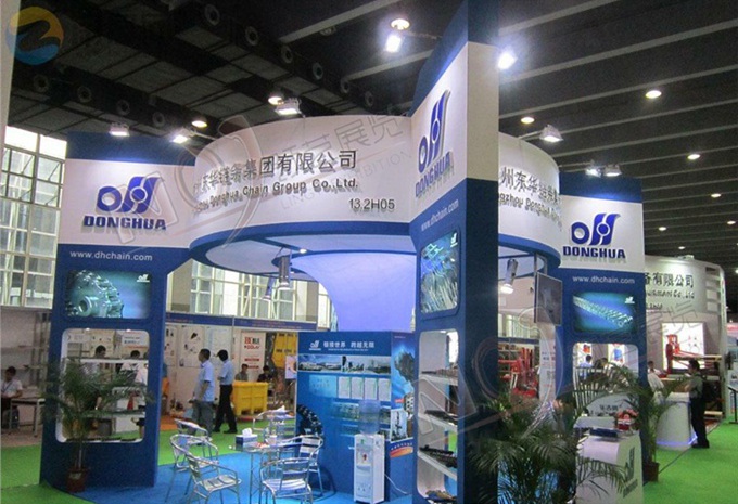 契合東華鏈條的品牌形象和產(chǎn)品特性,采用矩形結(jié)構(gòu),再搭配燈具燈光的效果,襯托出展位高端、時(shí)尚的氛圍,突出一種現(xiàn)代、大氣的時(shí)尚品味。