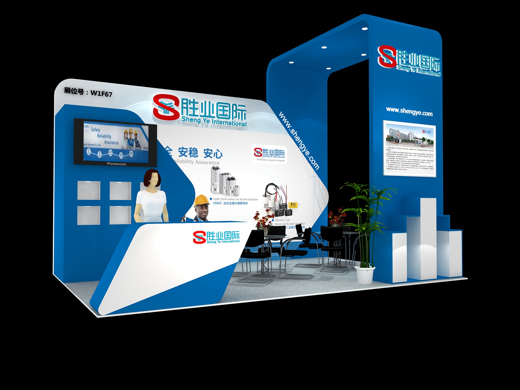 契合勝業(yè)的品牌形象和產品特性,采用開放式的造型,再搭配燈具燈光的效果,襯托出展位現(xiàn)代、清新氛圍,突出一種現(xiàn)代、高端的時尚品味。