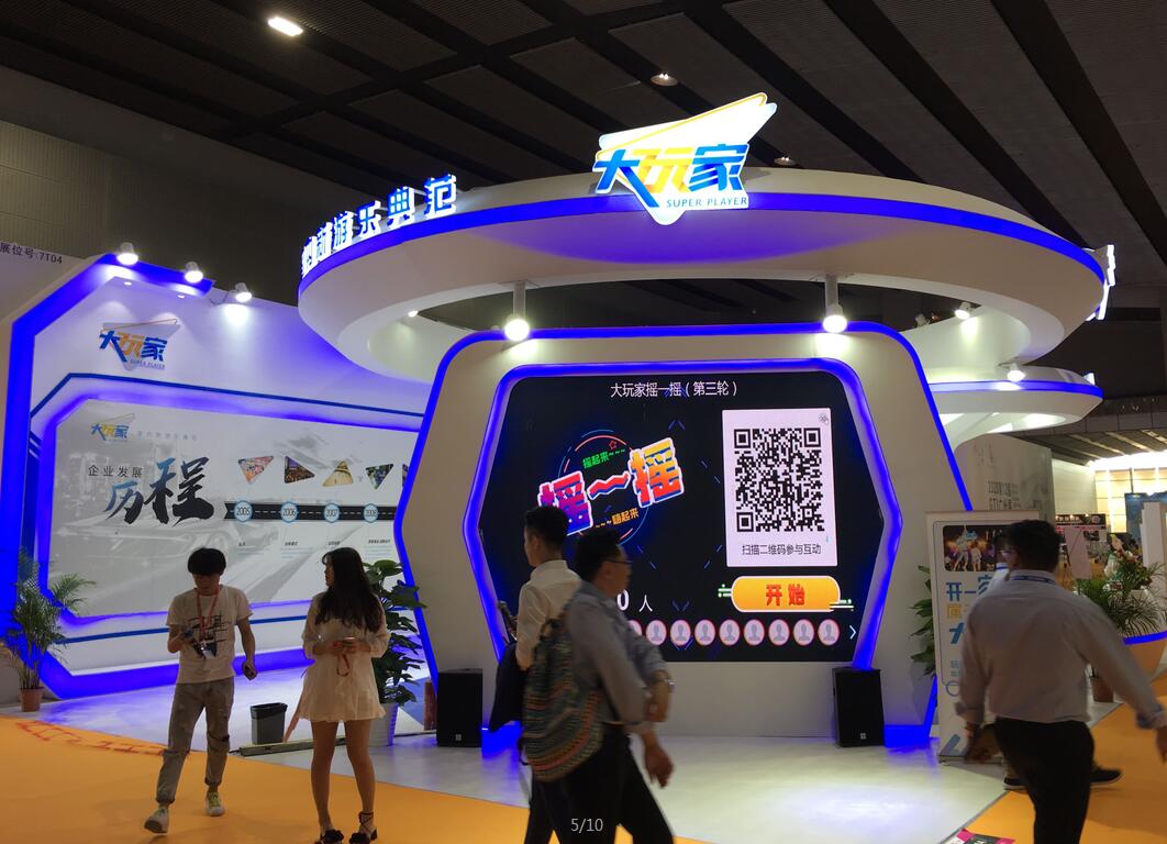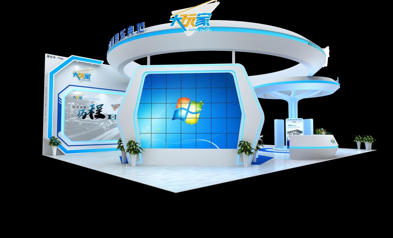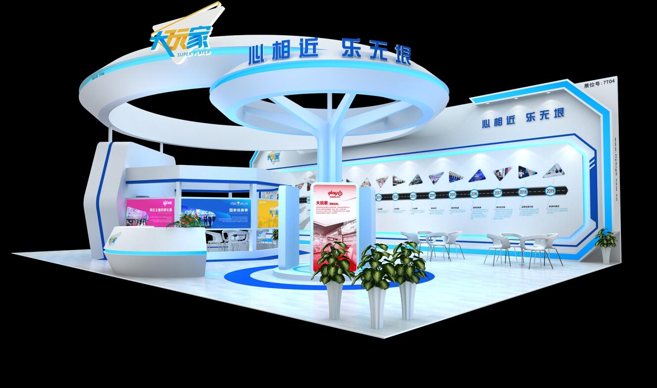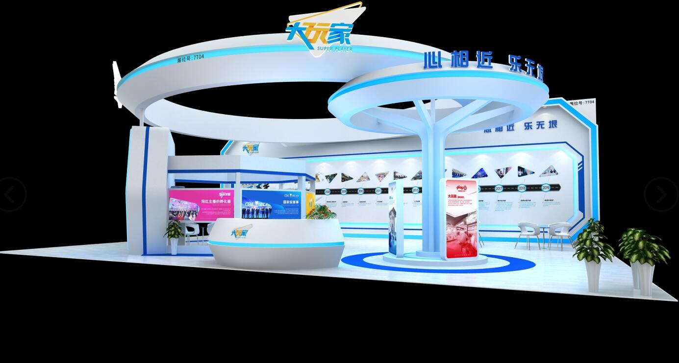 契合大玩家的品牌形象和產(chǎn)品特性,采用弧型結(jié)構(gòu),再搭配燈具燈光的效果,襯托出展位大氣、豪華的氛圍,突出一種簡約、時尚的品味。