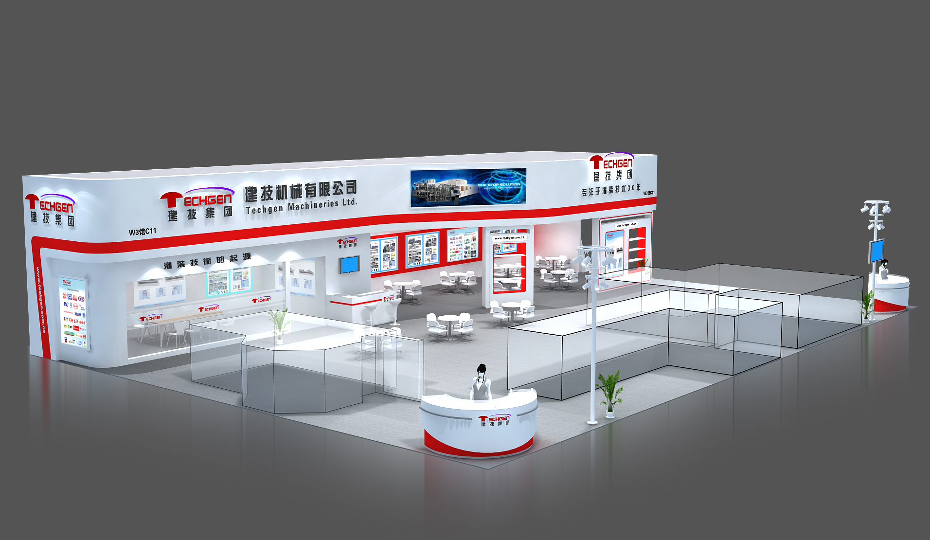 契合建計(jì)集團(tuán)的品牌形象和產(chǎn)品特性,采用矩形結(jié)構(gòu),再搭配燈具燈光的效果,襯托出展位簡約、舒適的氛圍,突出一種現(xiàn)代、高端的時(shí)尚品味。