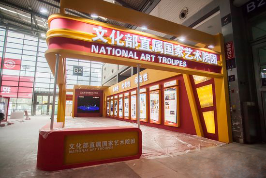 文化部直屬9大國家院團展區(qū)以“堅持崇高藝術(shù)理想,塑造國家藝術(shù)形象”為主題,9大院團的展示充分體現(xiàn)出導(dǎo)向性、代表性和示范性,展區(qū)設(shè)計顯得簡潔大氣。