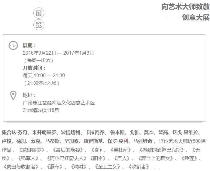 國(guó)內(nèi)知名藝術(shù)家共同策展,以專業(yè)視角將歐洲14世紀(jì)文藝復(fù)興時(shí)期至當(dāng)代17位全球最著名的藝術(shù)大師作品進(jìn)行藝術(shù)凝練,以創(chuàng)意生動(dòng)的動(dòng)態(tài)解析方式傳遞國(guó)際藝術(shù)美學(xué),走進(jìn)藝術(shù)長(zhǎng)河,一次看遍西方美術(shù)史。