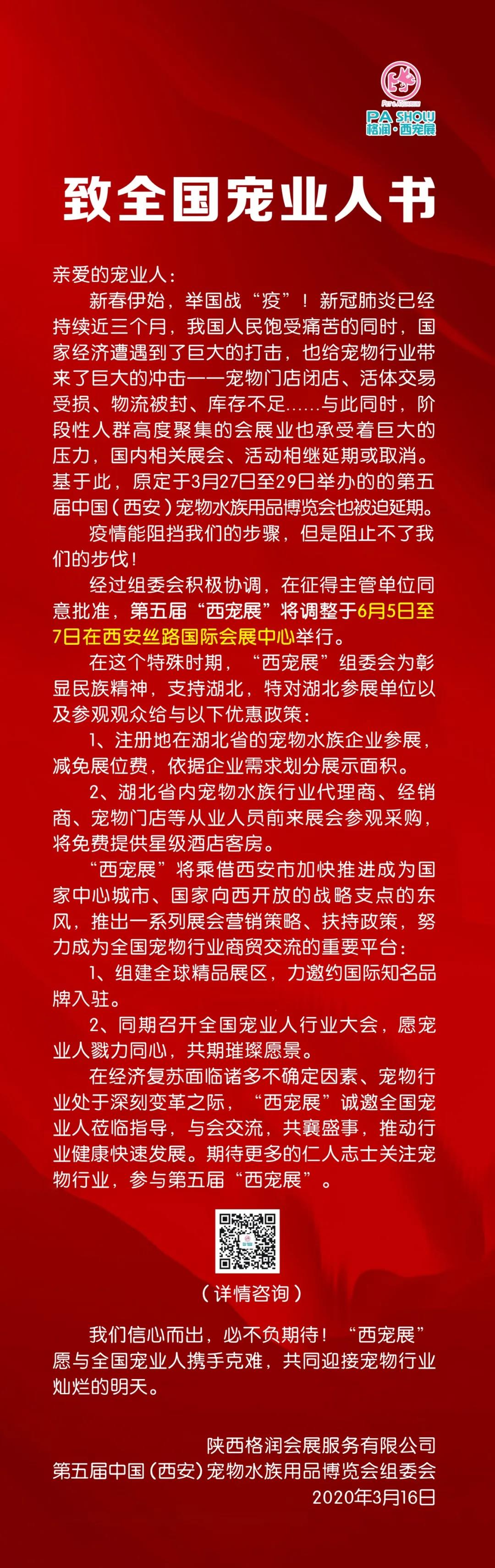 根據(jù)水族展展會(huì)設(shè)計(jì)搭建公司領(lǐng)藝展覽了解到,因受新型冠狀病毒疫情影響而延期,格潤(rùn)西寵物展定于2020年6月5-7日舉辦,期待6月與您相見(jiàn)!如需水族展設(shè)計(jì)請(qǐng)聯(lián)系領(lǐng)藝展覽,希望我們能在水族展搭建上為您添磚加瓦,祝各位朋友收獲多多,滿載而歸!