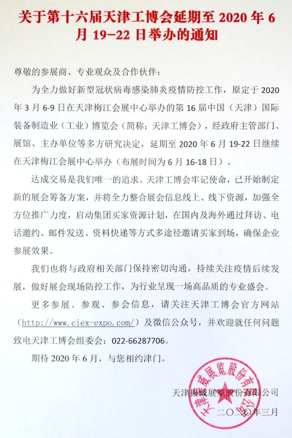 根據(jù)工博會展會設計搭建公司領(lǐng)藝展覽了解到,原定于2020年3月6-9日在天津梅江會展中心舉辦的第16屆中國(天津)國際裝備制造業(yè)(工業(yè))博覽會(簡稱:天津工博會),經(jīng)政府主管部門、展館、主辦單位等多方研究決定,延期至2020年6月19-22日繼續(xù)在天津梅江會展中心舉辦(布展時間為6月16-18日)。如需工博會展會設計請聯(lián)系領(lǐng)藝展覽,希望我們能在工博會展會搭建上為您添磚加瓦,祝各位朋友收獲多多,滿載而歸!