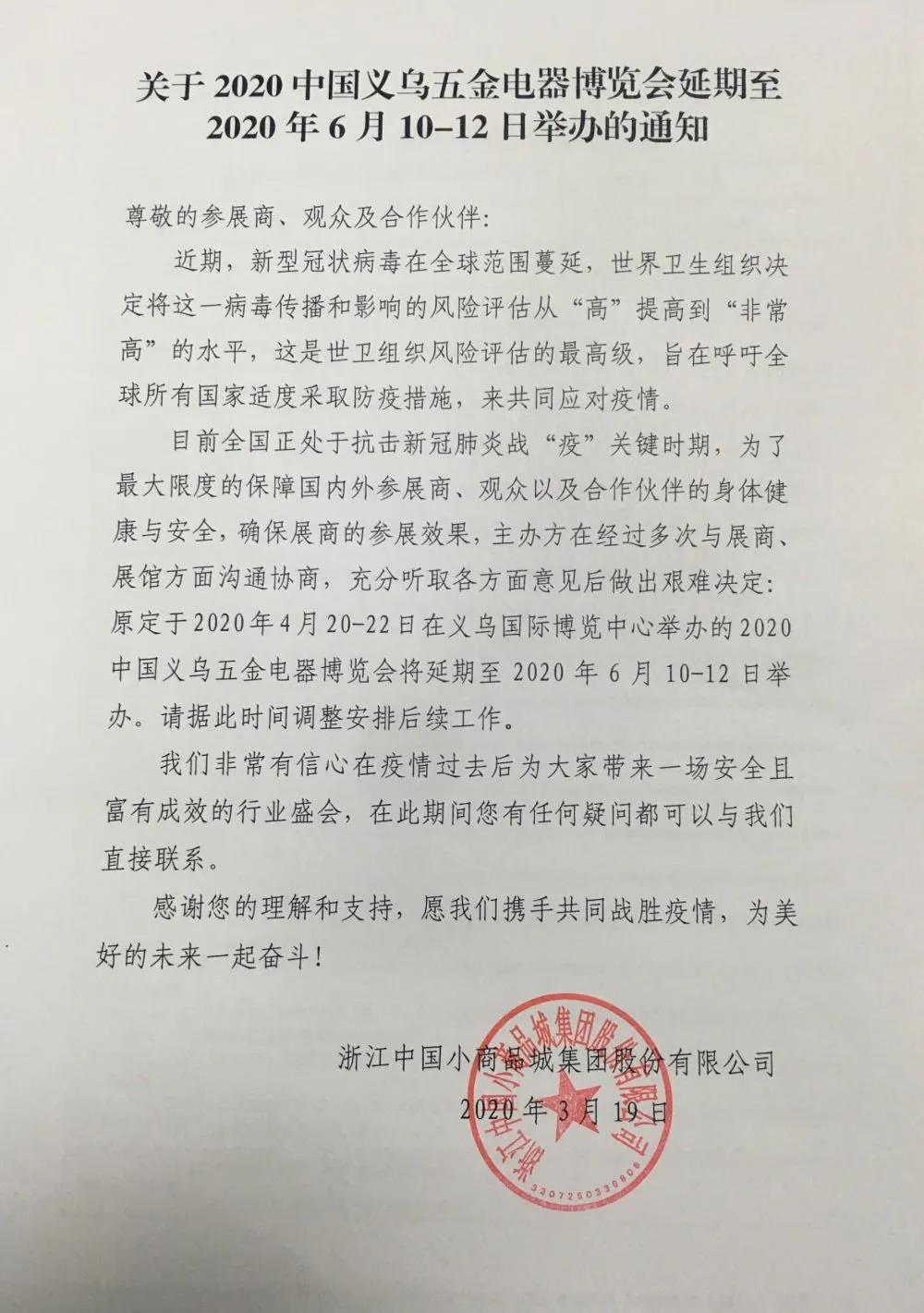 根據(jù)五金展會(huì)設(shè)計(jì)搭建公司領(lǐng)藝展覽了解到,原定于2020年4月20-22日在義烏國際博覽中心舉辦的2020中國義烏五金電器博覽會(huì)將延期至2020年6月10-12日舉辦。如需五金展設(shè)計(jì)請聯(lián)系領(lǐng)藝展覽,希望我們能在五金展會(huì)搭建上為您添磚加瓦,祝各位朋友收獲多多,滿載而歸!