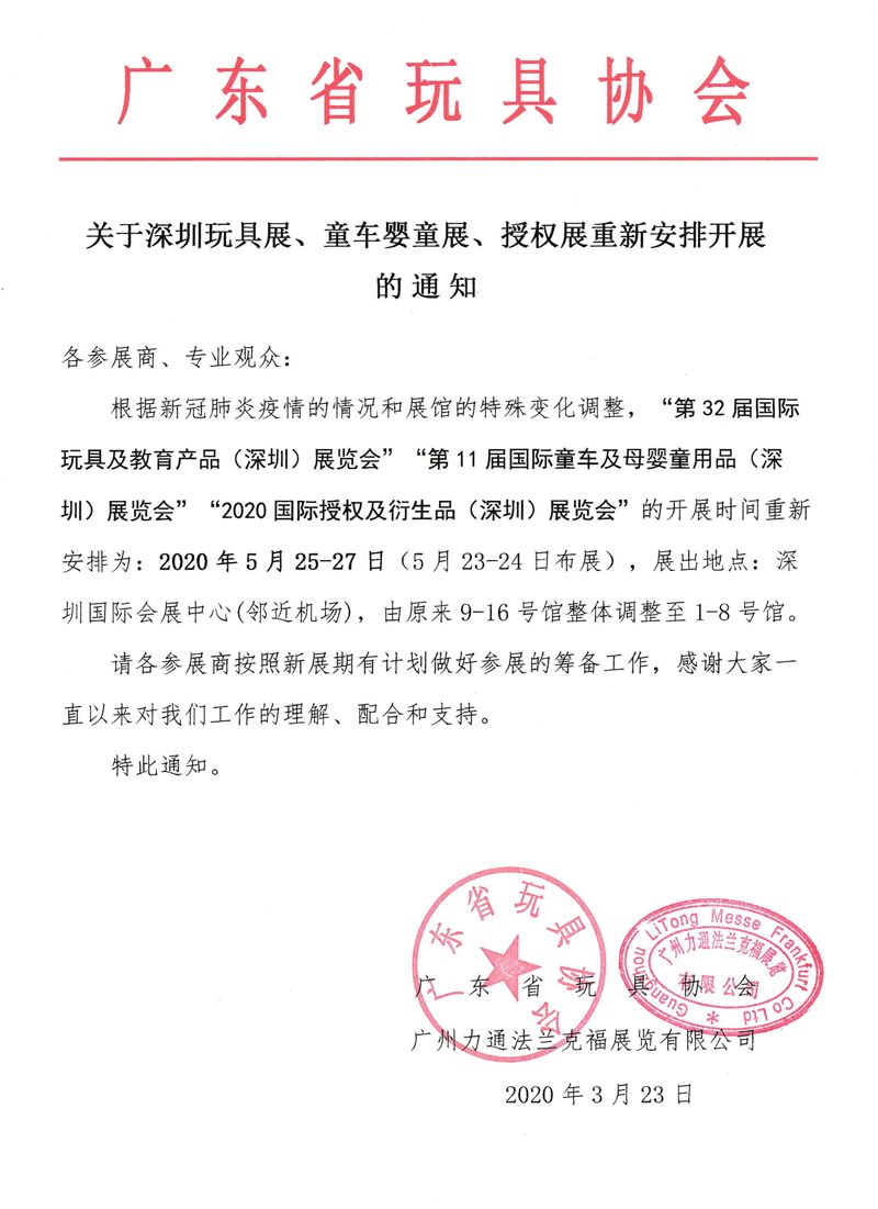 根據(jù)玩具展設(shè)計(jì)搭建公司領(lǐng)藝展覽了解到,根據(jù)新冠肺炎疫情的情況和展館的特殊變化調(diào)整,“第32屆國(guó)際玩具及教育產(chǎn)品(深圳)展覽會(huì)”“第11屆國(guó)際童車及母嬰童用(深圳)展覽會(huì)”“2020國(guó)際授權(quán)及衍生品(深圳)展覽會(huì)”的開展時(shí)間重新安排為:2020年5月25-27日(5月23-24日布展),展出地點(diǎn):深圳國(guó)際會(huì)展中心(鄰近機(jī)場(chǎng)),由原來9-16號(hào)館整體調(diào)整至1-8號(hào)館。如需玩具展設(shè)計(jì)請(qǐng)聯(lián)系領(lǐng)藝展覽,希望我們能在玩具展搭建上為您添磚加瓦,祝各位朋友收獲多多,滿載而歸!