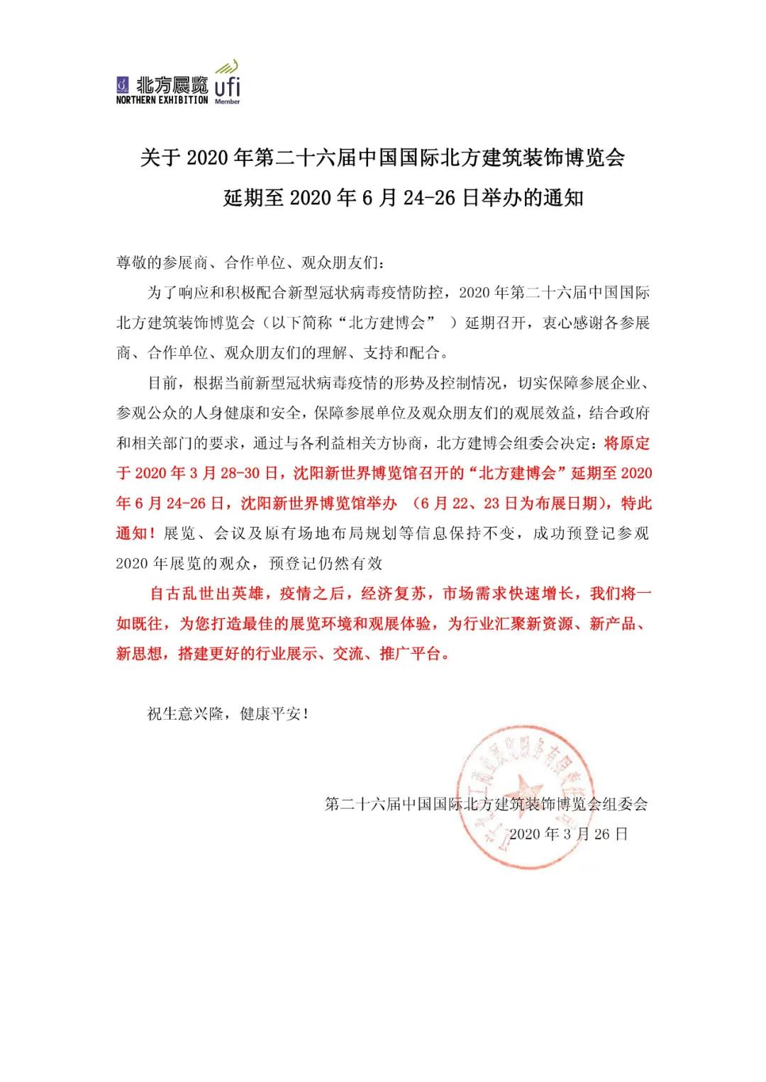 根據(jù)建博會(huì)設(shè)計(jì)搭建公司領(lǐng)藝展覽了解到,原定于2020年3月28-30日,沈陽新世界博覽館召開的“北方建博會(huì)”延期至2020年6月24-26日,沈陽新世界博覽館舉辦。如需建博會(huì)設(shè)計(jì)請(qǐng)聯(lián)系領(lǐng)藝展覽,希望我們能在建博會(huì)搭建上為您添磚加瓦,祝各位朋友收獲多多,滿載而歸!