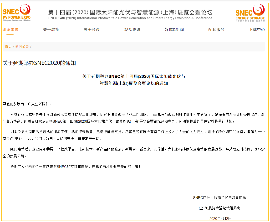 根據(jù)光伏展設(shè)計(jì)搭建公司領(lǐng)藝展覽了解到,為貫徹落實(shí)黨中央關(guān)于應(yīng)對(duì)新冠肺炎疫情防控工作部署,切實(shí)保障各參展企業(yè)工作團(tuán)隊(duì)、與會(huì)嘉賓與觀眾的身體健康和生命安全,確保海內(nèi)外展商的參展效果,經(jīng)與各方協(xié)商,組委會(huì)研究決定將SNEC第十四屆(2020)國際太陽能光伏與智慧能源(上海)展覽會(huì)暨論壇延期舉辦,延期調(diào)整后的具體安排將另行通知。如需光伏展設(shè)計(jì)請(qǐng)聯(lián)系領(lǐng)藝展覽,希望我們能在光伏展搭建上為您添磚加瓦,祝各位朋友收獲多多,滿載而歸!