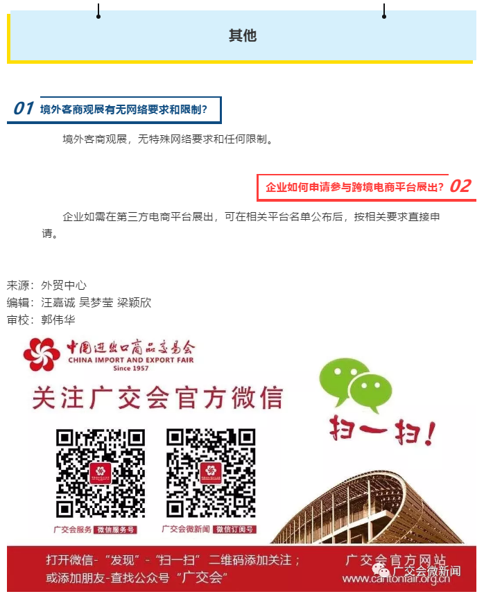 根據(jù)廣交會線上展廳設計公司領藝展覽了解到,萬眾矚目的第127屆廣交會,將于6月15-24日在網上舉辦。本屆廣交會如何舉辦,參展企業(yè)如何“云展示”及“云營銷”,都是大家關心的熱點問題。為做好廣交會在網上舉辦的參展指引工作,及時讓企業(yè)了解和配合相關組織工作,大會將視工作進展,分多次發(fā)布參展指引?,F(xiàn)公布指引之三,敬請關注!如需廣交會線上展廳設計請聯(lián)系領藝展覽,希望我們能在廣交會搭建上為您添磚加瓦,祝各位朋友收獲多多,滿載而歸!