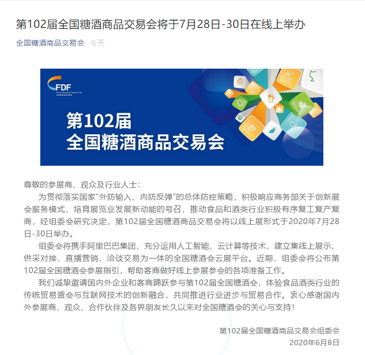 糖酒會(huì)設(shè)計(jì)搭建公司領(lǐng)藝展覽了解到,為貫徹落實(shí)國家“外防輸入、內(nèi)防反彈”的總體防控策略,積極響應(yīng)商務(wù)部關(guān)于創(chuàng)新展會(huì)服務(wù)模式、培育展覽業(yè)發(fā)展新動(dòng)能的號(hào)召,推動(dòng)食品和酒類行業(yè)積極有序復(fù)工復(fù)產(chǎn)復(fù)商,經(jīng)組委會(huì)研究決定,第102屆全國糖酒商品交易會(huì)將以線上展形式于2020年7月28日-30日舉辦。如需展會(huì)設(shè)計(jì)請(qǐng)聯(lián)系領(lǐng)藝展覽,希望我們能在展會(huì)搭建上為您添磚加瓦,祝各位朋友收獲多多,滿載而歸!