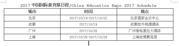 素有“留學(xué)風(fēng)向標(biāo)”之稱的中國(guó)國(guó)際教育展,將于2017年10月21日至29日北京和上海等地舉辦。