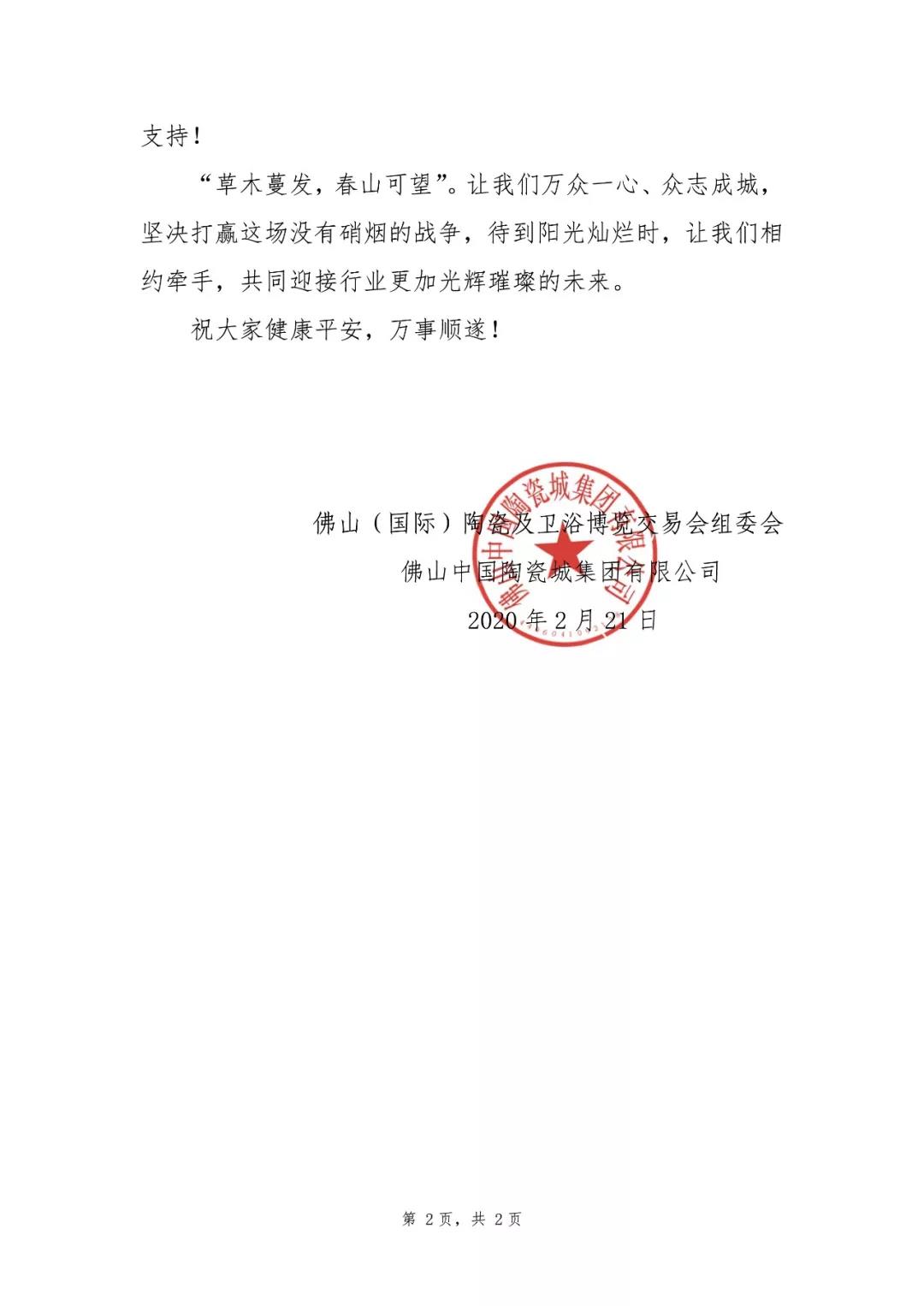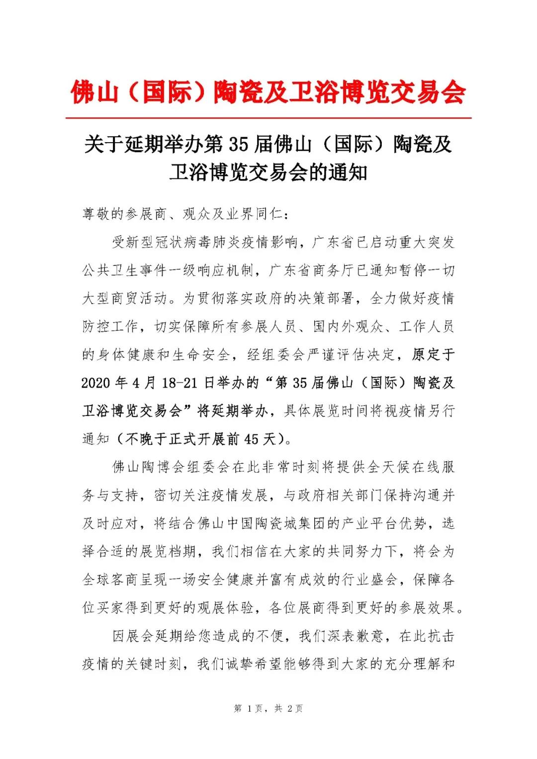 根據(jù)陶博會陶瓷展設計搭建公司領藝展覽了解到,受新型冠狀病毒疫情防控影響。為全力做好新型冠狀病毒感染肺炎疫情防控工作,為了響應及配合疫情防控工作,確保各參展商及觀眾的健康安全,陶博會組委會決定將原定于2020年4月18-21日舉辦的第35屆佛山(國際)陶瓷及衛(wèi)浴博覽交易會將延期舉辦。有關展會的最新消息,請關注展會官網(wǎng):www.cerambath.org。如需陶博會設計請聯(lián)系領藝展覽,希望我們能在陶博會搭建上為您添磚加瓦,祝各位朋友收獲多多,滿載而歸!