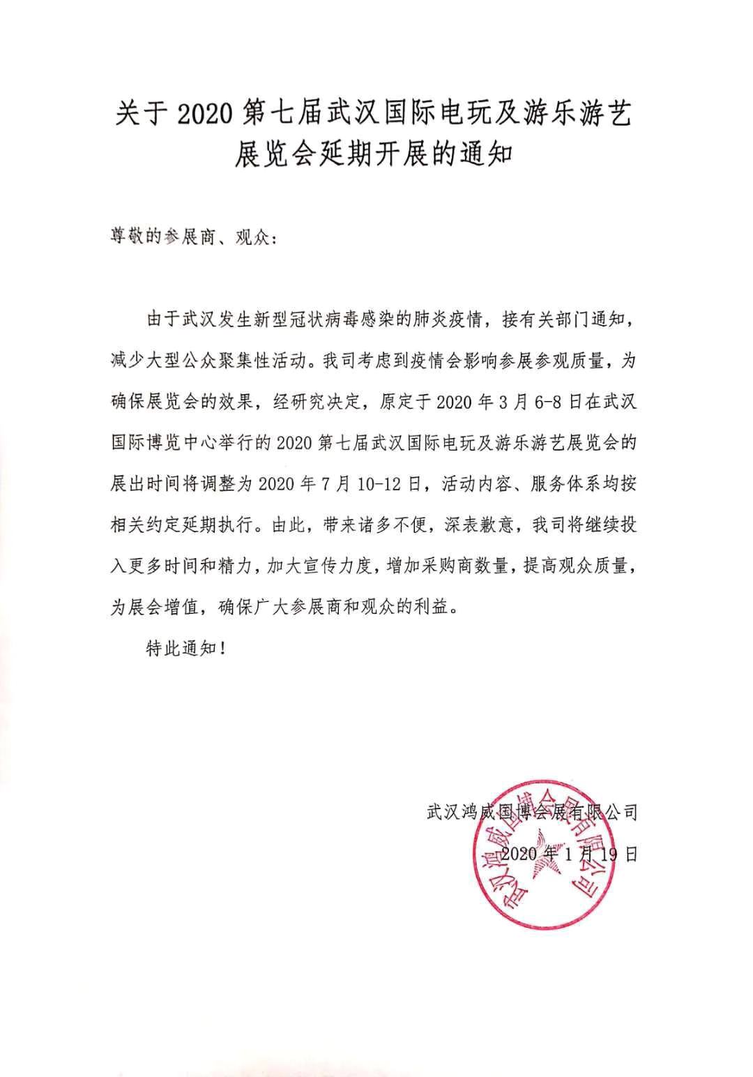 根據(jù)武漢電玩游樂設(shè)備展設(shè)計(jì)搭建公司領(lǐng)藝展覽解到,鑒于目前全國發(fā)生“新型冠狀病毒感染肺炎”疫情,為了積極響應(yīng)及配合疫情防控工作,確保各參會(huì)人士的安全與健康,并保證參會(huì)效果,原定于2020年3月6日-8 日在武漢國際博覽中心舉辦的2020第七屆武漢國際電玩及游樂游藝展覽會(huì)將正式延期至2020年7月10日-12日舉辦地點(diǎn)維持不變。如需武漢電玩游樂設(shè)備展設(shè)計(jì)請(qǐng)聯(lián)系領(lǐng)藝展覽,希望我們能在武漢電玩游樂設(shè)備展搭建上為您添磚加瓦,祝各位朋友收獲多多,滿載而歸!