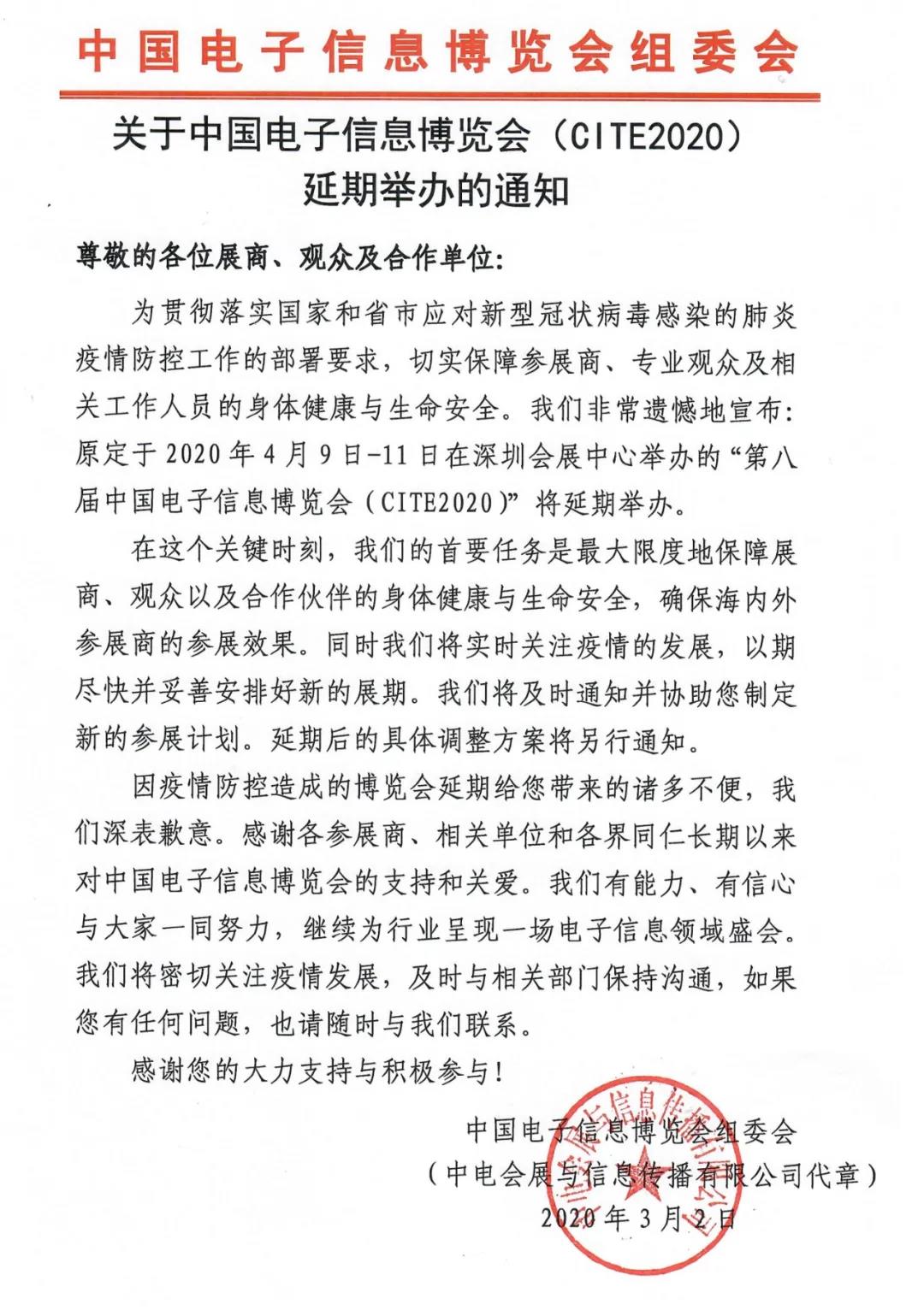 根據(jù)深圳電子展設(shè)計(jì)搭建公司領(lǐng)藝展覽了解到,原定于2020年4月9-11日在深圳會(huì)展中心舉辦的第八屆中國電子信息博覽會(huì)延期,延期后的具體調(diào)整方案將另行通知。如需深圳電子展設(shè)計(jì)請聯(lián)系領(lǐng)藝展覽,希望我們能在深圳電子展搭建上為您添磚加瓦,祝各位朋友收獲多多,滿載而歸!