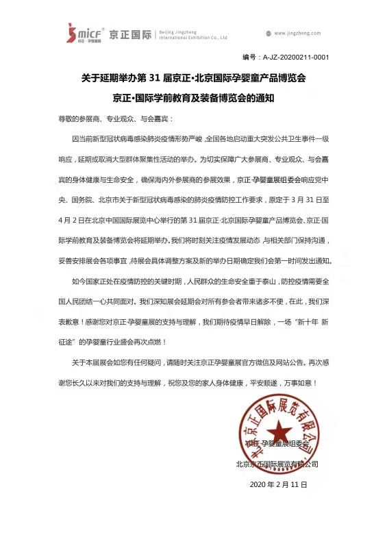 根據(jù)北京孕嬰童展設(shè)計(jì)搭建公司領(lǐng)藝展覽了解到,原定于2020年3月31日至4月2日在北京中國國際展覽中心舉辦的第31屆京正·北京國際孕嬰童產(chǎn)品博覽會將延期舉辦,具體展覽時間將視疫情另行通知。如需北京孕嬰童展展臺設(shè)計(jì)請聯(lián)系領(lǐng)藝展覽,希望我們能在北京孕嬰童展展臺搭建上為您添磚加瓦,祝各位朋友收獲多多,滿載而歸!