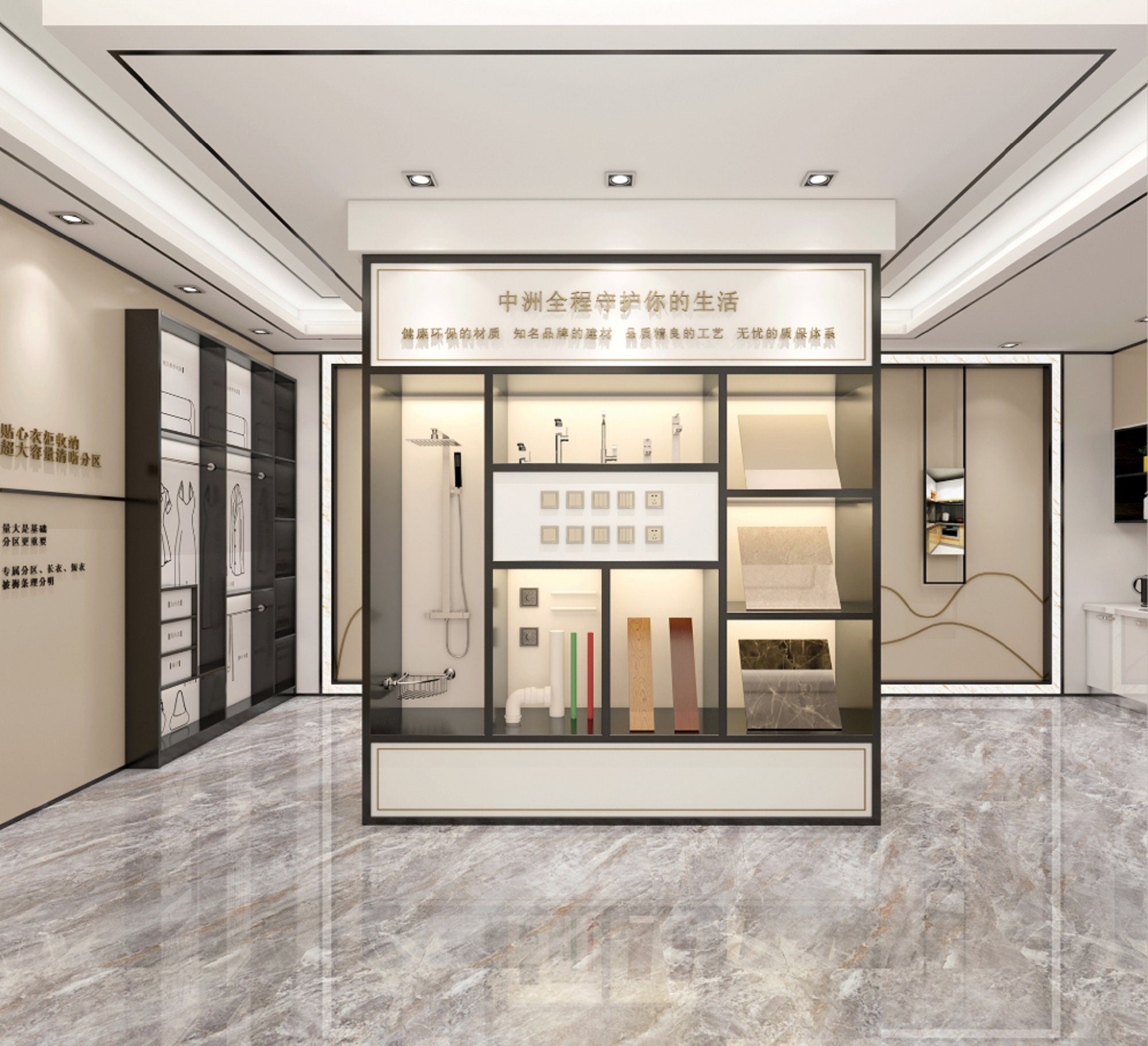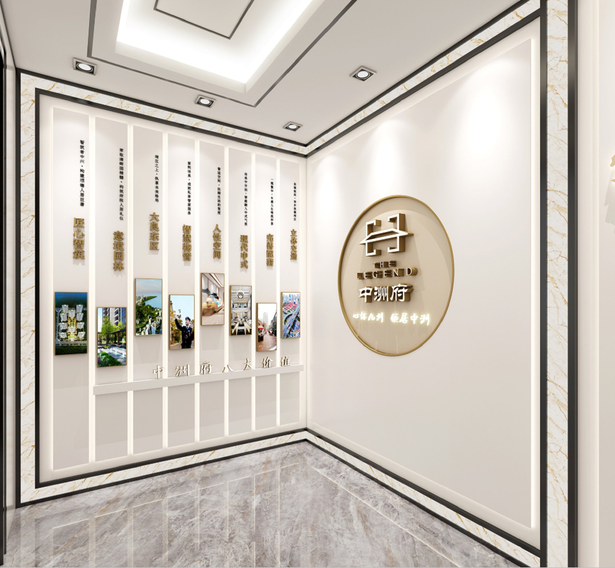 契合中洲府的品牌形象和產(chǎn)品特性,采用開放式結(jié)構(gòu)進(jìn)行合理的分區(qū),再搭配燈具燈光的效果,襯托出展廳大氣、豪華的氛圍,突出一種簡約、時尚的品味。