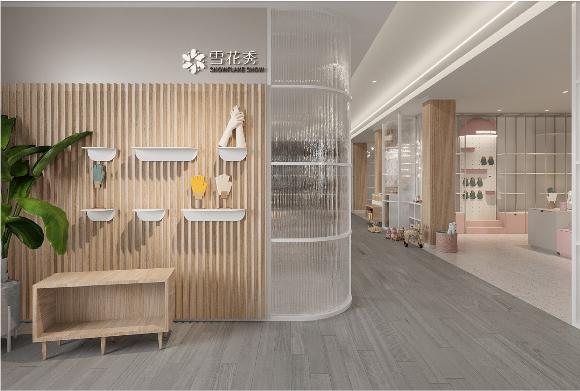 契合雪花秀的品牌形象和產(chǎn)品特性,采用開放式結(jié)構(gòu)進(jìn)行合理的分區(qū),再搭配燈具燈光的效果,襯托出展廳大氣、豪華的氛圍,突出一種簡(jiǎn)約、時(shí)尚的品味。