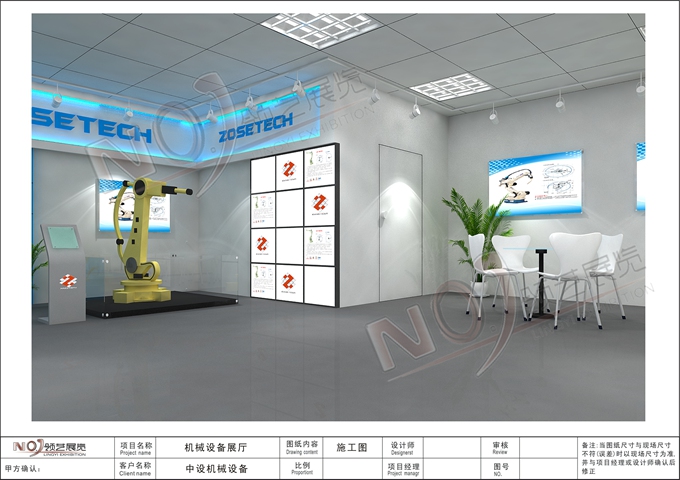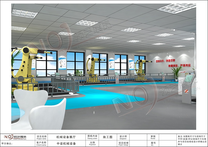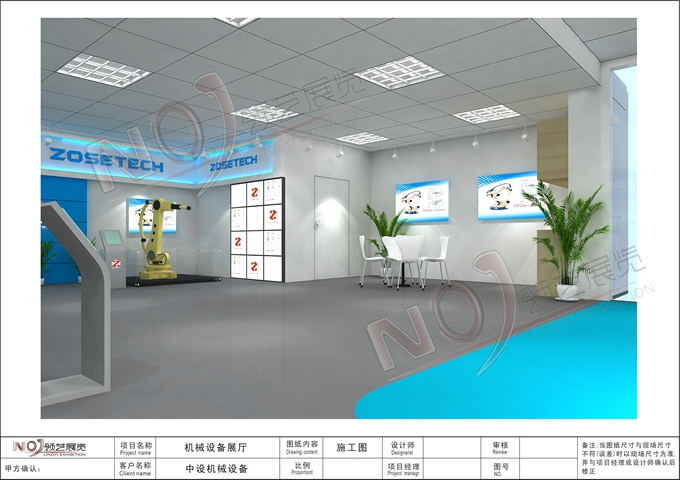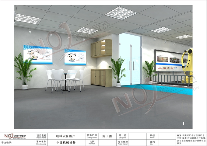 契合的中設(shè)機械品牌形象和產(chǎn)品特性,采用矩形結(jié)構(gòu),再搭配燈具燈光的效果,襯托出展位高端、時尚的氛圍,突出一種現(xiàn)代、大氣的時尚品味。