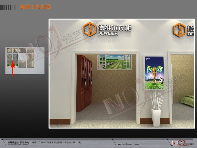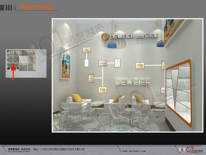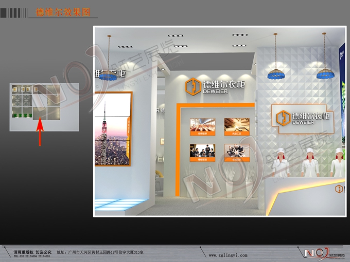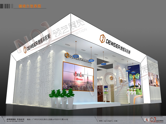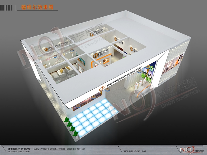 契合德維爾的品牌形象和產(chǎn)品特性,采用框型結構,再搭配燈具燈光的效果,襯托出展位時尚、簡約的氛圍,突出一種融合、個性的時尚品味。