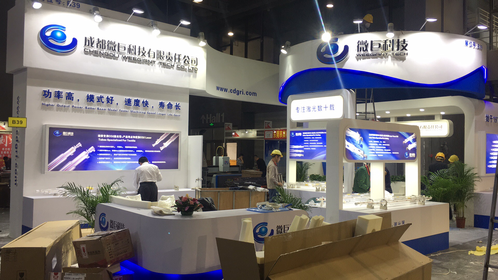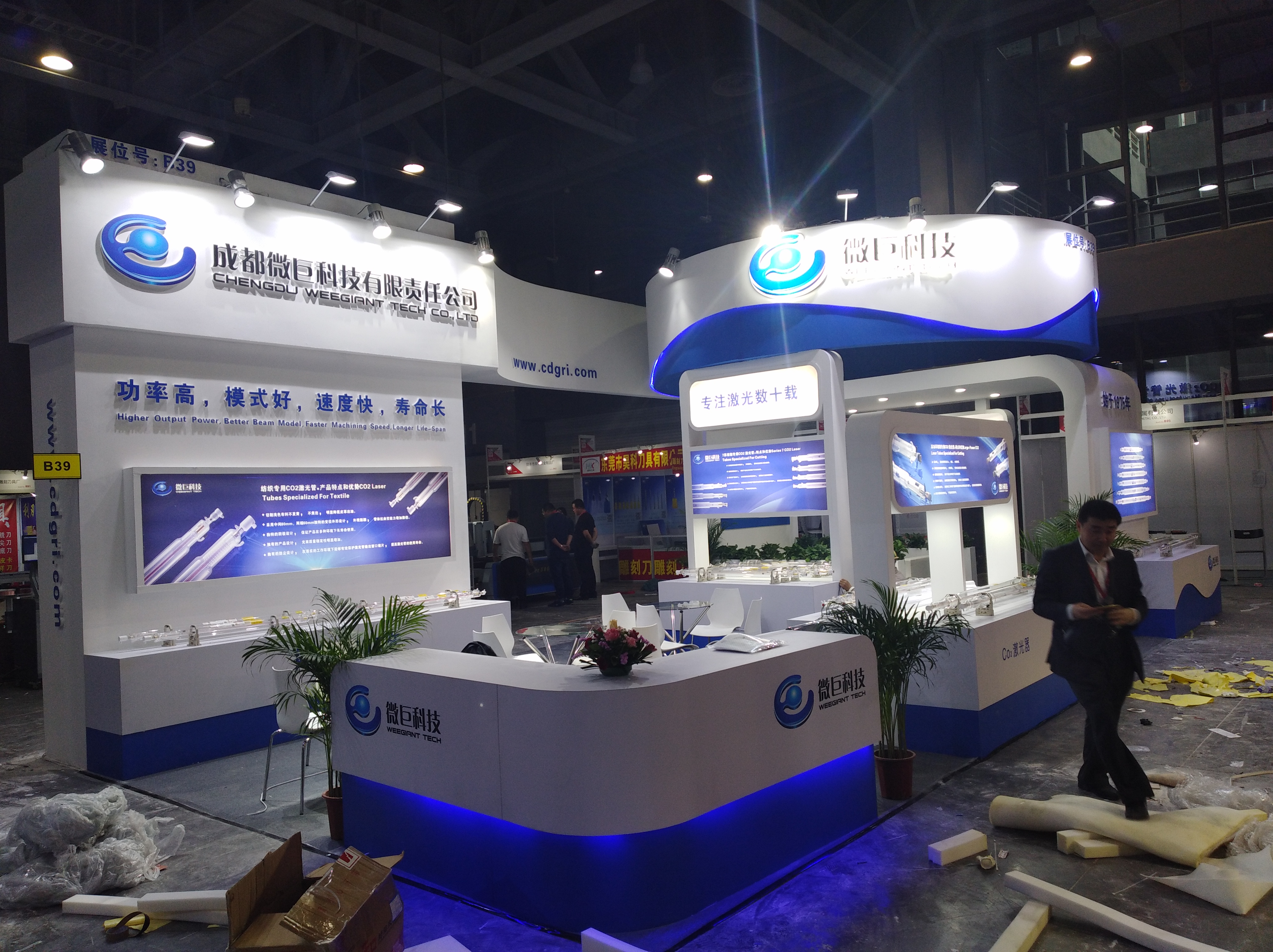契合成都微巨品牌形象和產(chǎn)品特性,采用開放式的效果,再搭配燈具燈光的效果,襯托出展位現(xiàn)代、突出一種現(xiàn)代、高端的時尚品味。