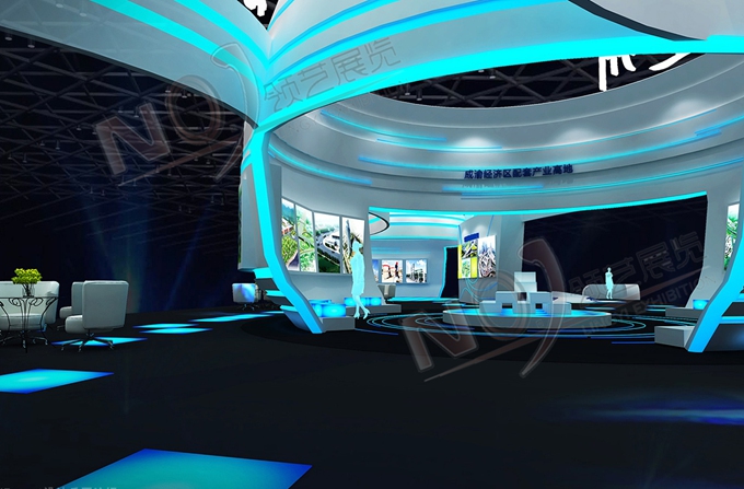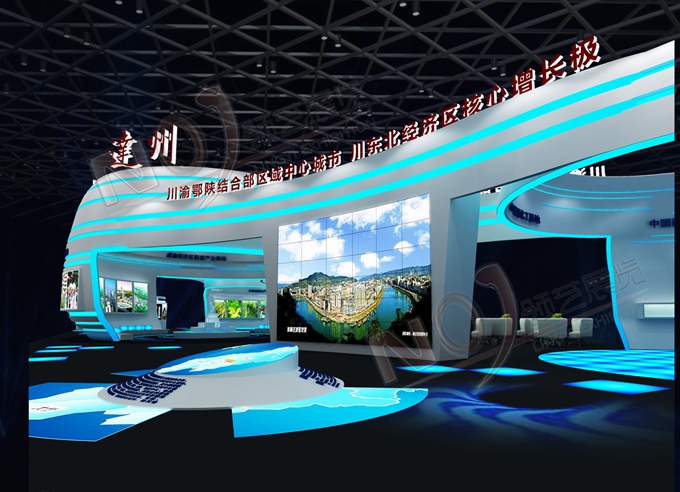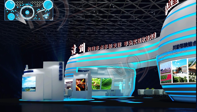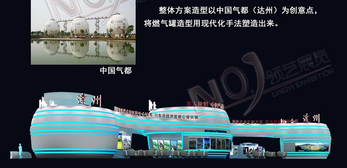 巧妙的運(yùn)用白色、藍(lán)色作為搭配,著重突出達(dá)州“東大門(mén)”的特點(diǎn),再搭配燈具燈光的效果,突出一種現(xiàn)代、高端的時(shí)尚品味,使整個(gè)展位主題鮮明又活力四射。