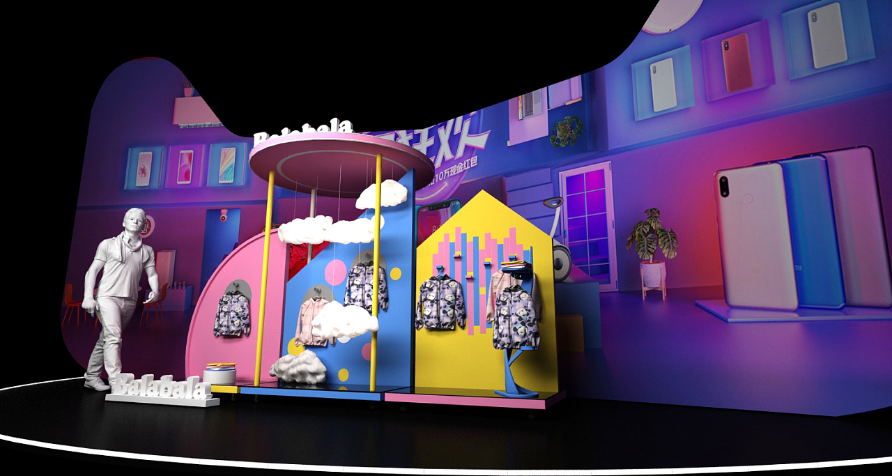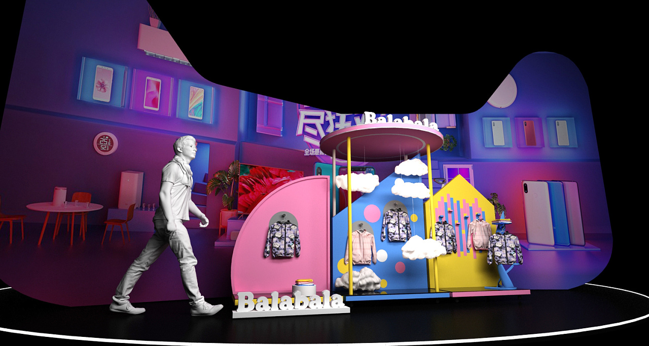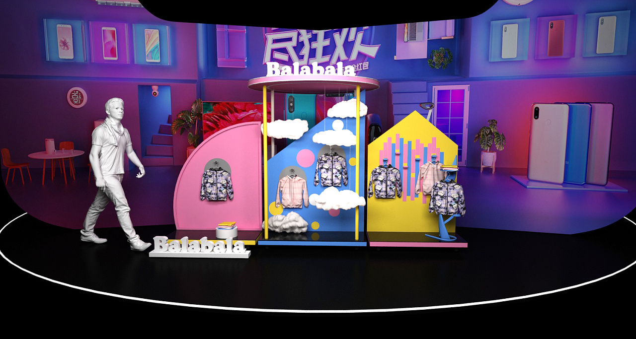 契合巴拉巴拉的品牌形象和產(chǎn)品特性,采用開放式結(jié)構(gòu),再搭配燈具燈光的效果,襯托出直播間大氣、豪華的氛圍,突出一種簡(jiǎn)約、時(shí)尚的品味。